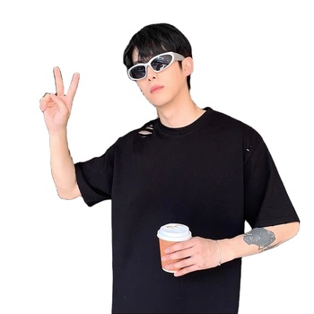 カスタマイズされた男性用ビンテージTシャツゆったりとしたウエスト空白穴ウォッシュストリートウェア
