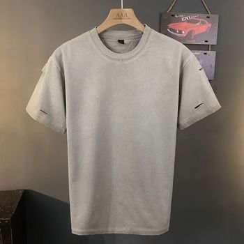 เสื้อยืดวินเทจของผู้ชายเอวหลวมโอเวอร์ไซส์แต่งลายด้วยรูเปล่าซักเสื้อผ้าตามสั่ง