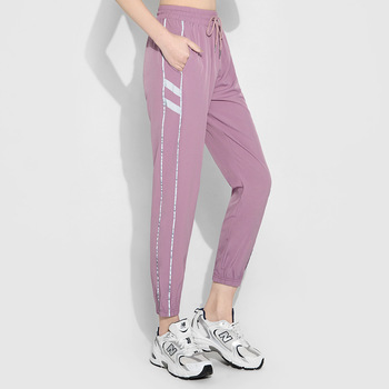 Kadın yüksek bel sıska Yoga koşucu pantolonu çabuk kuruyan dokuz noktalı çizgili koşu tayt düz ön tarzı ile