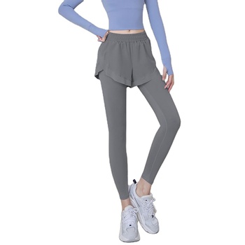 Toptan kadın çift katmanlı elastik hızlı kuru spor şort yüksek bel özel Logo dantel yıkanmış kumaş Yoga koşu şort